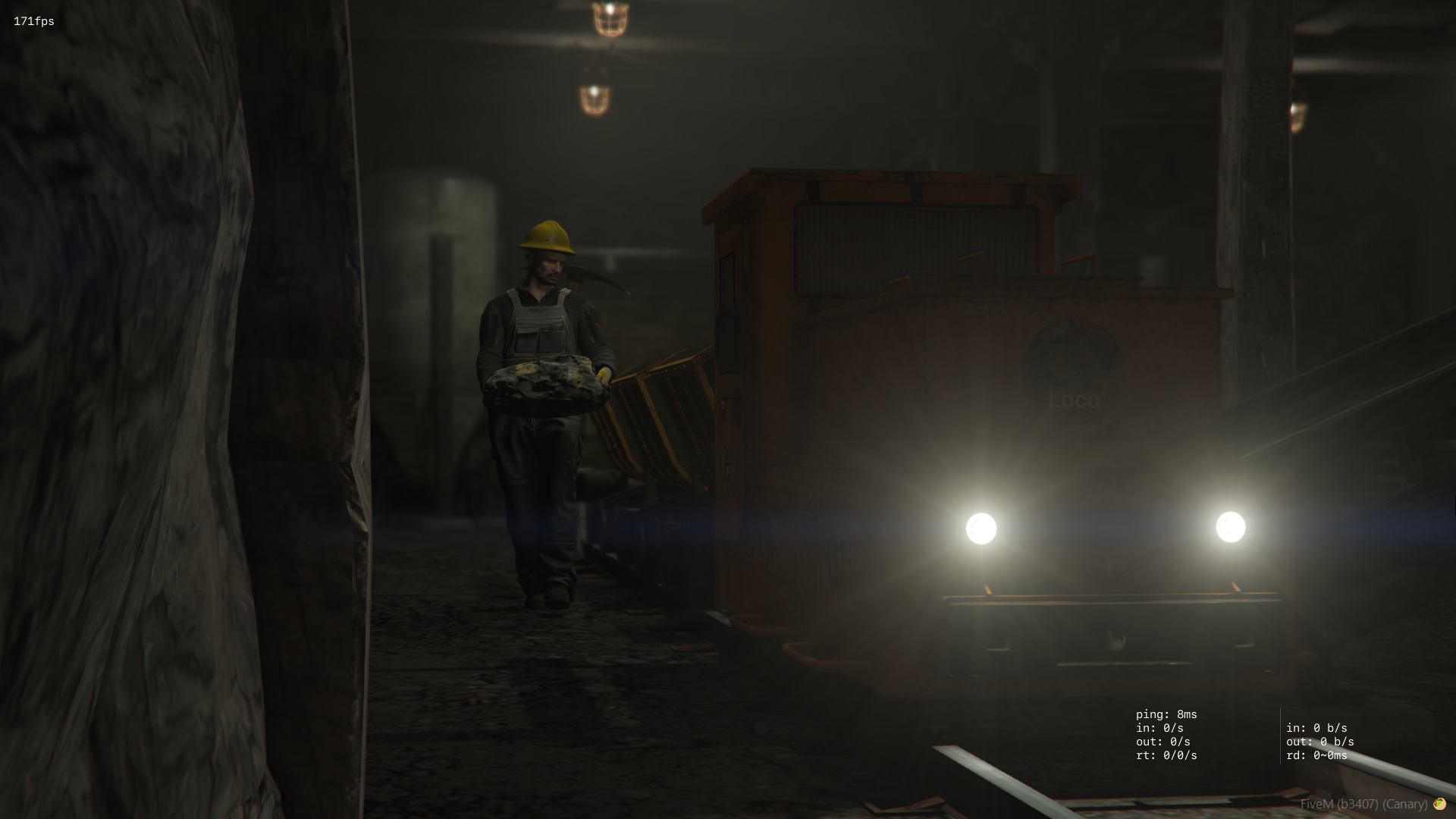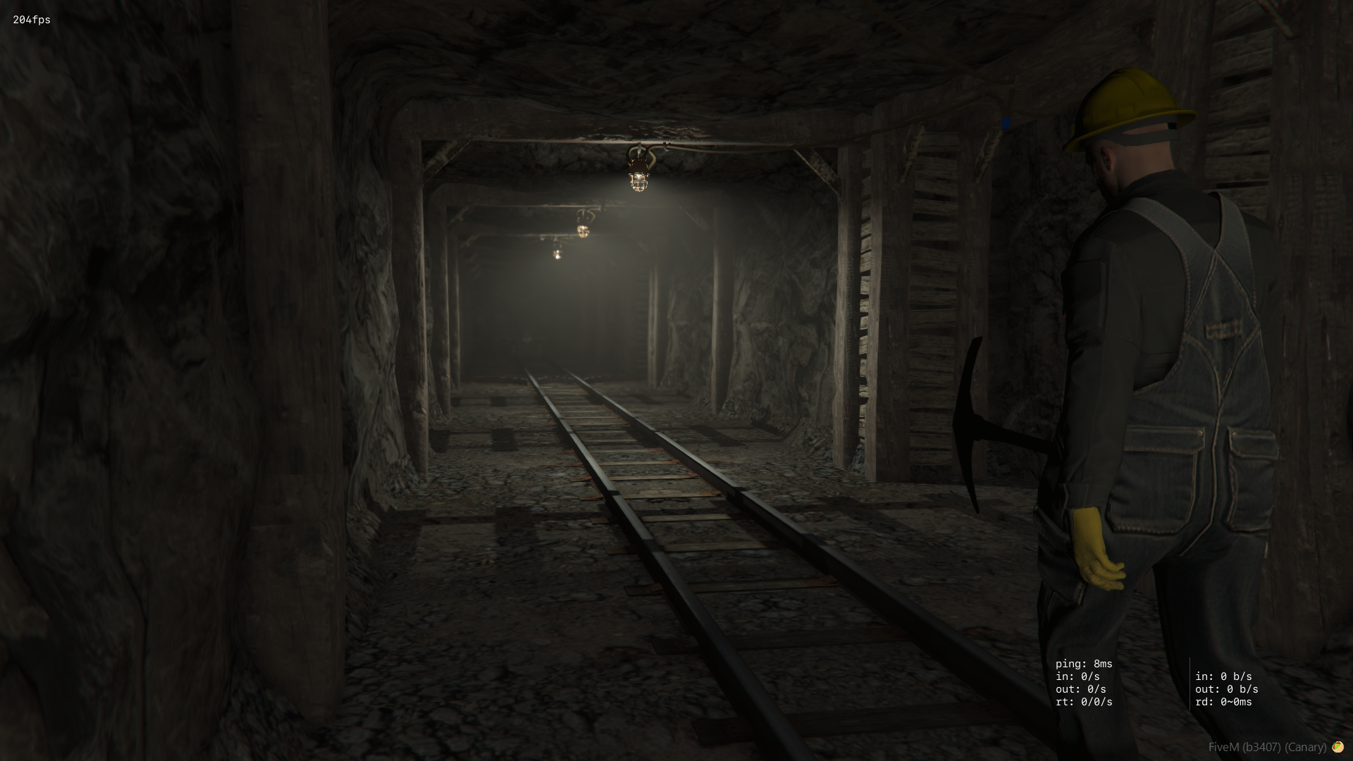 The Miner resource provides a fully modular, realistic mining experience for FiveM servers. It features custom ore models, a detailed interior mine, working rail and cart systems, and equipment mechanics designed to create an immersive and scalable mining economy.