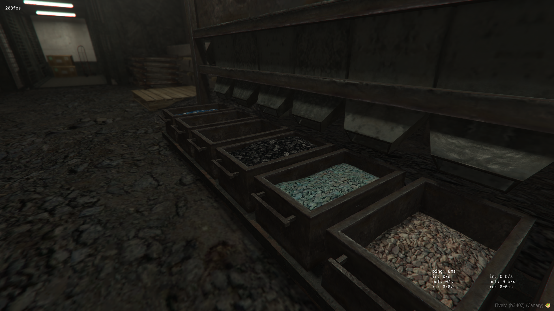 The Miner resource provides a fully modular, realistic mining experience for FiveM servers. It features custom ore models, a detailed interior mine, working rail and cart systems, and equipment mechanics designed to create an immersive and scalable mining economy.